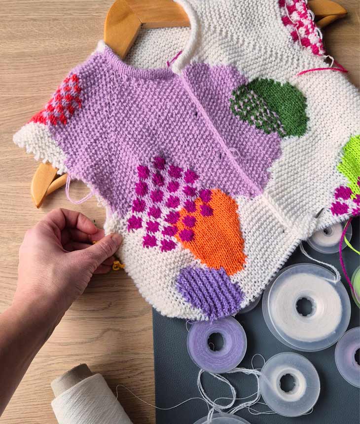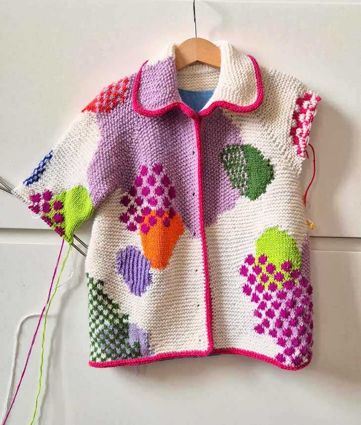 A playful, scrap-friendly cardigan designed to spark your creativity.